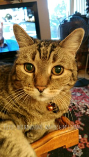Elliot was the cat who let Steven know it was time to eat by standing on the end table and staring at him until he got up to feed him. No matter if there was food in their dishes, when it was time to eat, it was time to stare. When he was only a couple of months old, he dove under my chair just as I sat down, and there was a horrible screech. The daughter and I rushed the whimpering baby to the vets, where he was pronounced ok and adorable. Seriously, the vet brought purring Elliot back to us and said he had nothing broken, maybe just pinched, and he was the cutest kitten he’d ever seen. I don’t remember how much that cost, but it was a lot for a professional to proclaim the obvious. Elliot was an adorable kitten. He also got into a lot of trouble.
